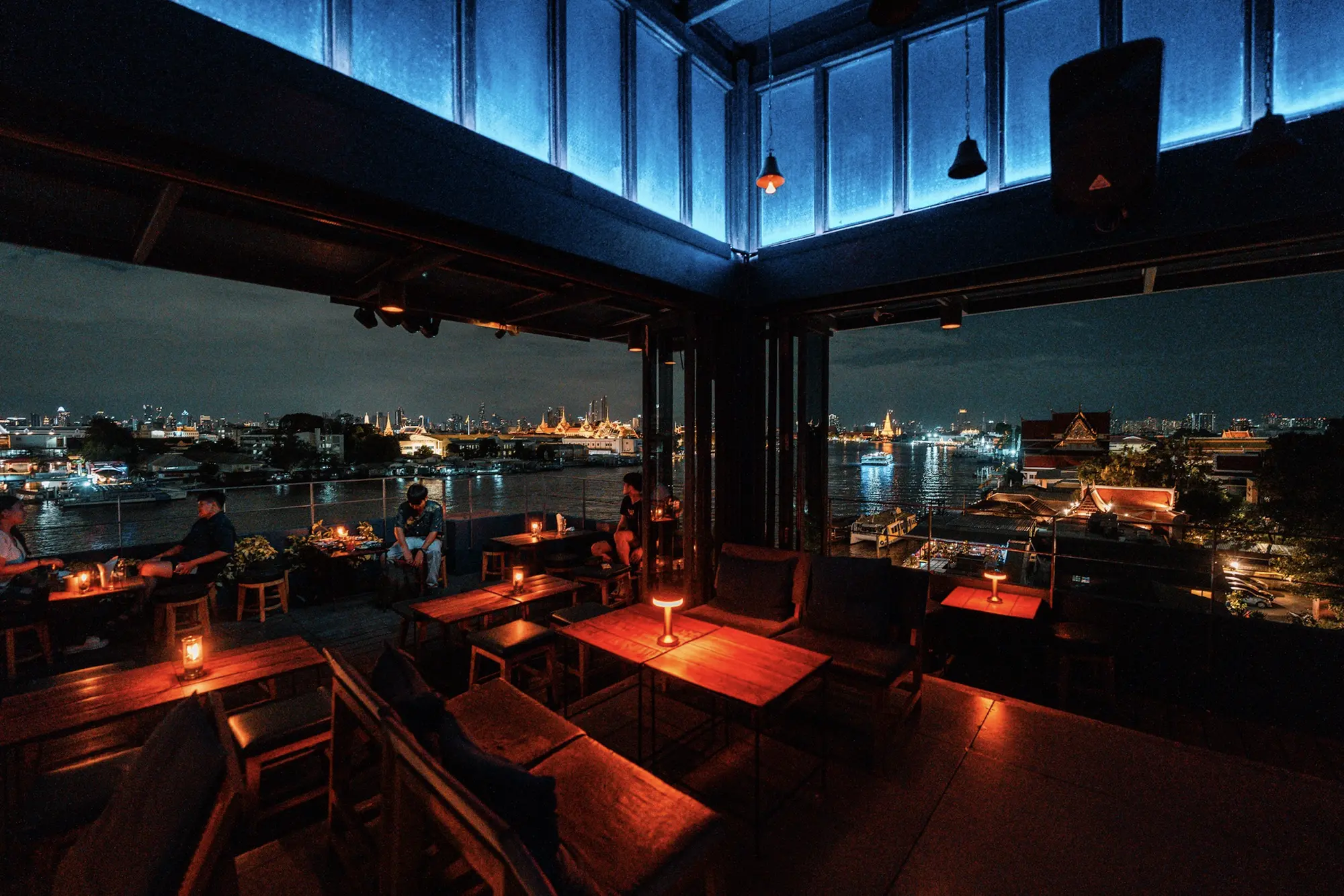 Located on top of the Baan Wanglang Riverside hotel along the Chao Phraya River, 342 Bar is a rooftop retreat in Bangkok Noi’s Siriraj district. The venue features panoramic views of iconic landmarks like the Grand Palace, Wat Phra Kaew, and Wat Arun. The menu includes a selection of signature cocktails and local bites, and is the perfect balance between a romantic date spot and a relaxed evening hangout.