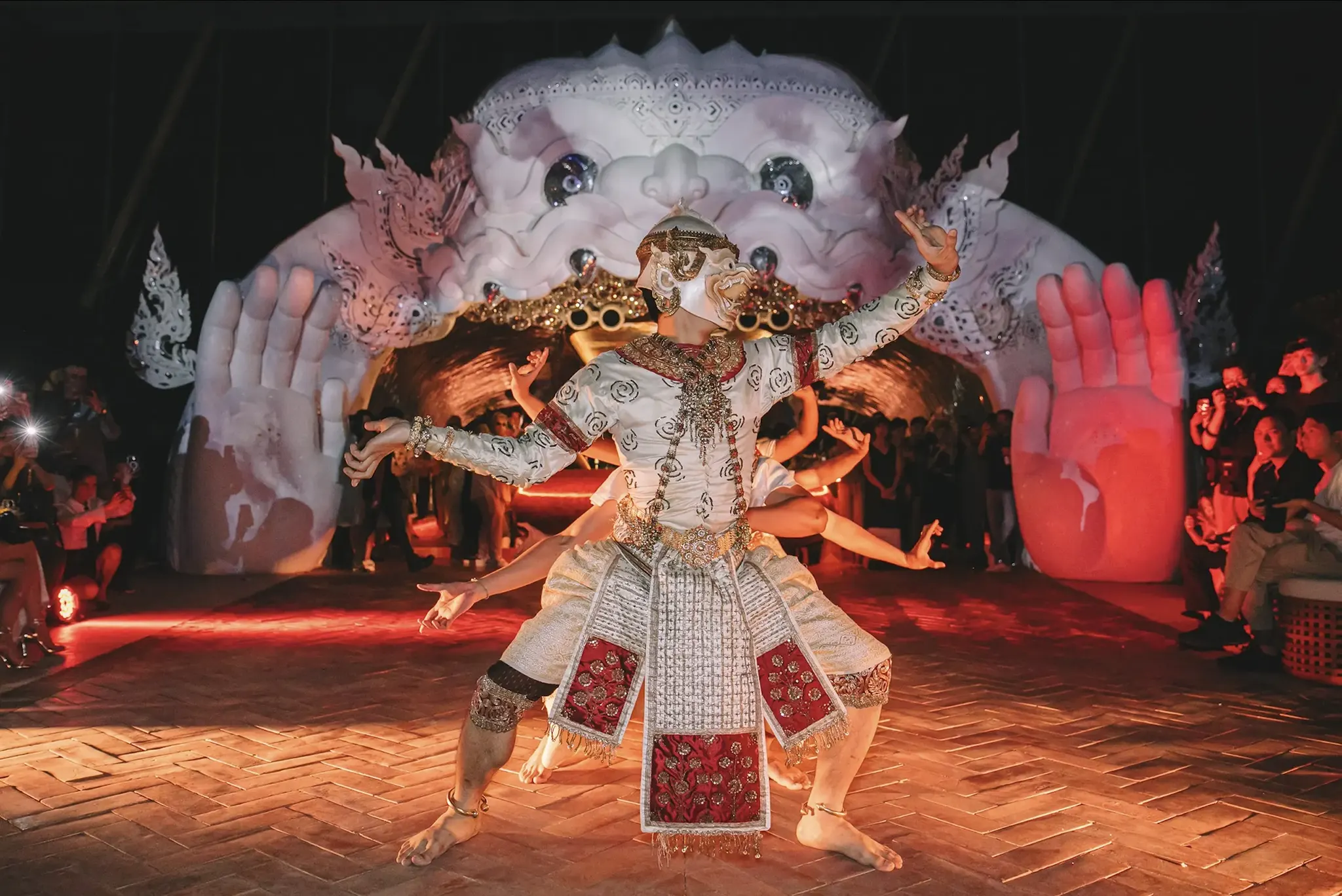 Akara Sky Hanuman offers a unique blend of panoramic city views and rich Thai cultural experiences. As the world’s highest Thai-inspired rooftop venue, it immerses visitors in a multi-sensory journey featuring traditional performances like Khon dance and Muay Thai, alongside modern DJ sets, all set beneath a grand Hanuman sculpture. Guests can savor authentic Thai cuisine and signature cocktails while enjoying the 360-degree views of Bangkok’s skyline, making it a must-visit destination for those seeking a memorable evening above the city.