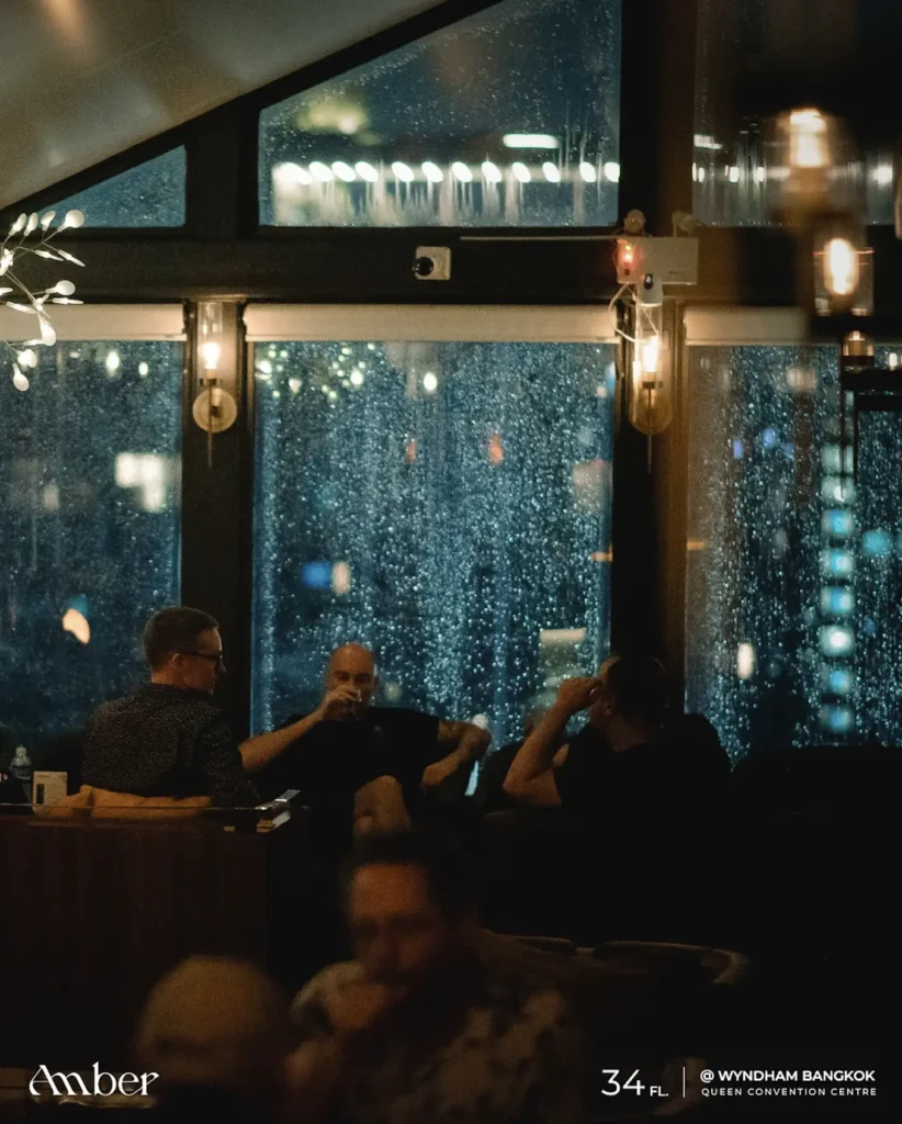 Amber Bar is a rooftop lounge on the 34th floor of the Wyndham Bangkok Queen Convention Centre, steps from MRT Queen Sirikit. It’s perfect for golden-hour views over the city and Benjakitti Park, a relaxed date night, or a quiet drink after work. Expect signature cocktails, live-DJ, and a warm, modern design.