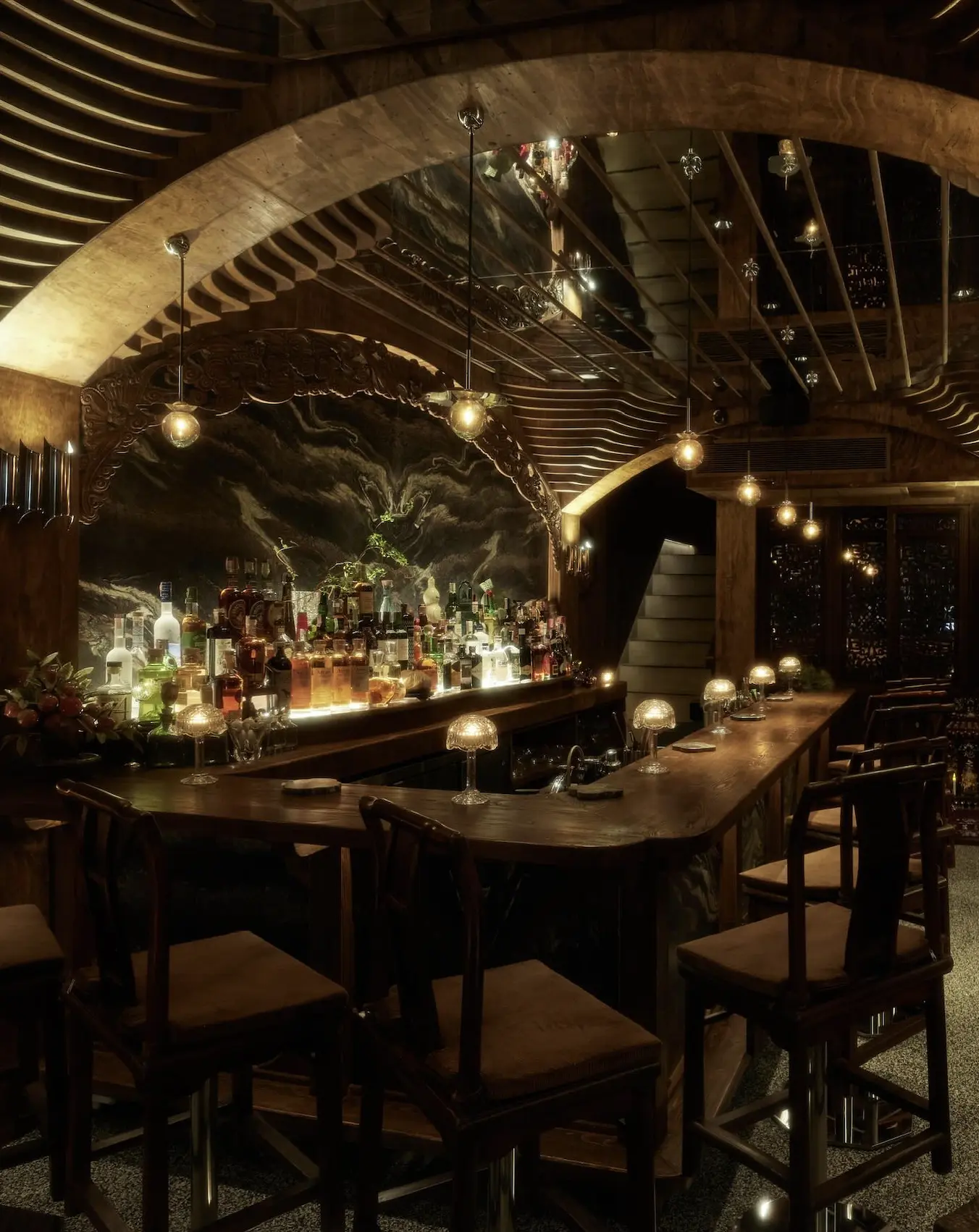 Blessing Shophouse transforms a restored Chinese-Thai shophouse into an atmospheric cocktail destination. Just steps from BTS Asok and Terminal 21, the two-story bar blends traditional motifs like plum blossoms, moon gates, and symbolic bats with sleek modern design, creating a space that feels both historic and contemporary. Once an antique furniture shop, it now offers intimate lounges and softly lit interiors where guests can enjoy inventive cocktails inspired by Thai-Chinese heritage, such as the Solar Dynasty or Mango Cult.