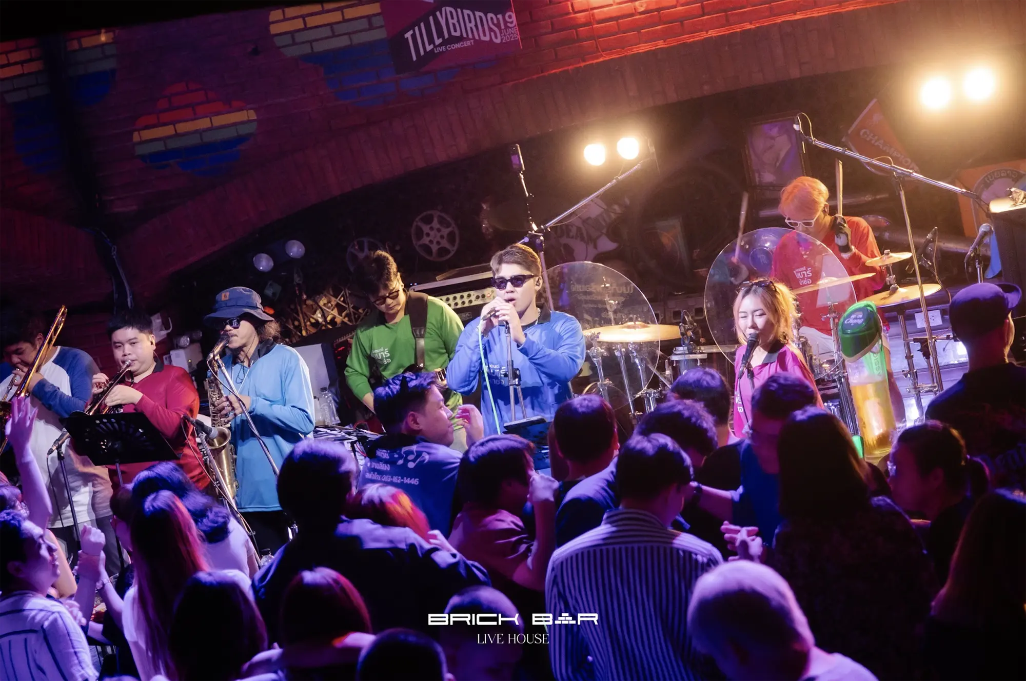 Brick Bar is a live-music venue in Bangkok’s Khao San Road. Located behind a modest entrance, it opens into a cavern-like room with red-brick arches, low ceilings, and diverse crowd of locals, students, and travelers