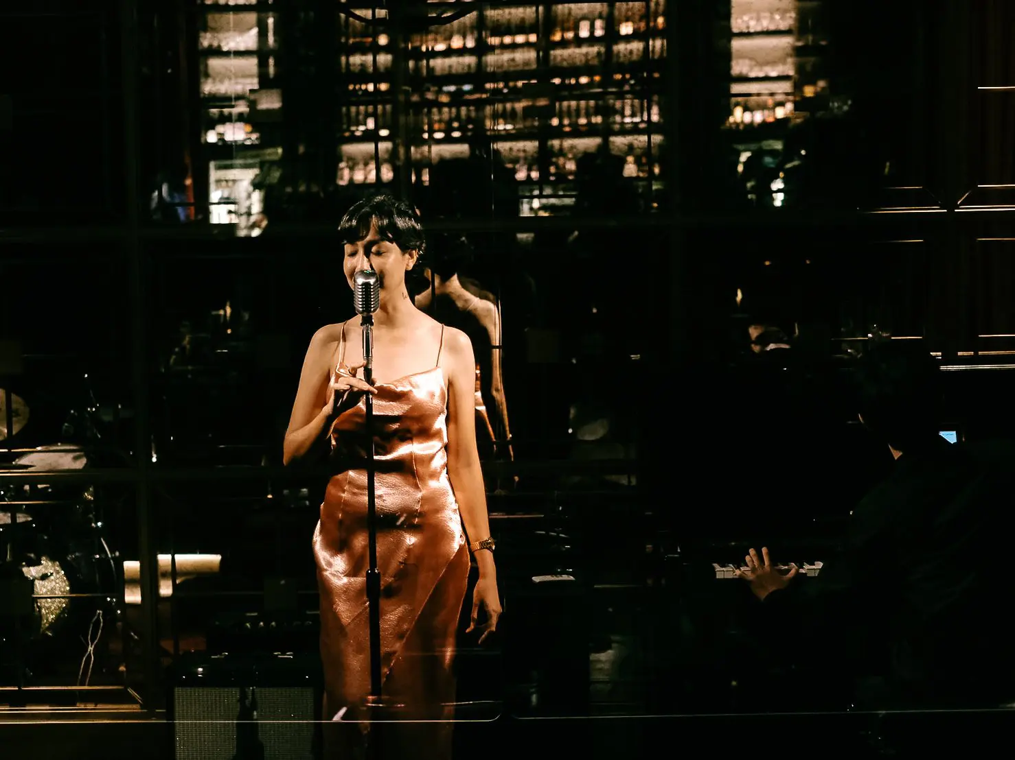 Crimson Room is evocative of the lively dance and entertainment halls of the roaring twenties, that glorious decade when jazz flourished, and liquor was in abundance despite being prohibited. Styled to look like a glamorous theater, the space features large chandeliers, globe lights and dark wooden partitions. The drinking area is set on different levels, reminiscent of a stylish stadium, and is strategically positioned so that patrons can get both a good view and an intimate feel of an impressive stage at the front of the room. Every night, the red velvet curtains open to reveal respected names in Bangkok’s jazz scene as well as up-and-coming jazz prodigies, who never fail to deliver mesmerizing performances.