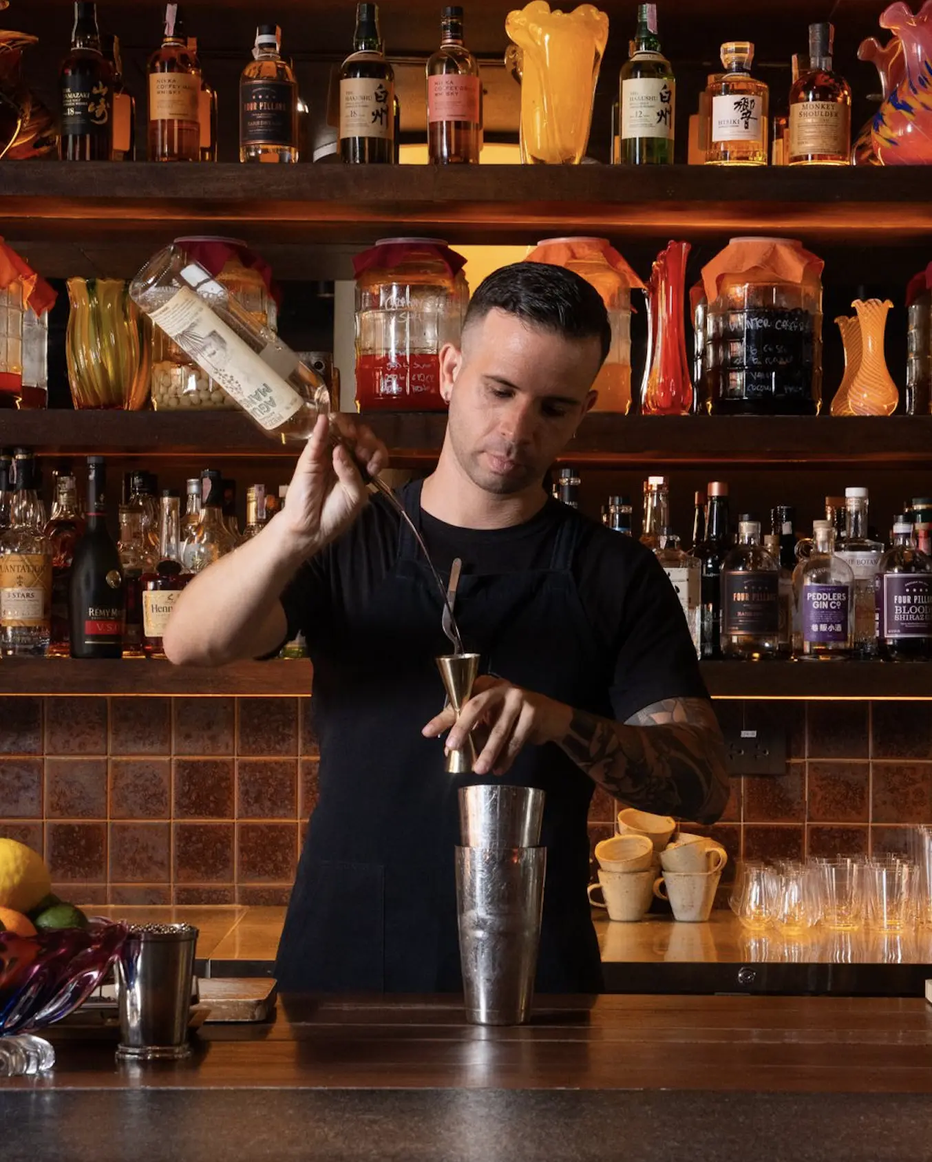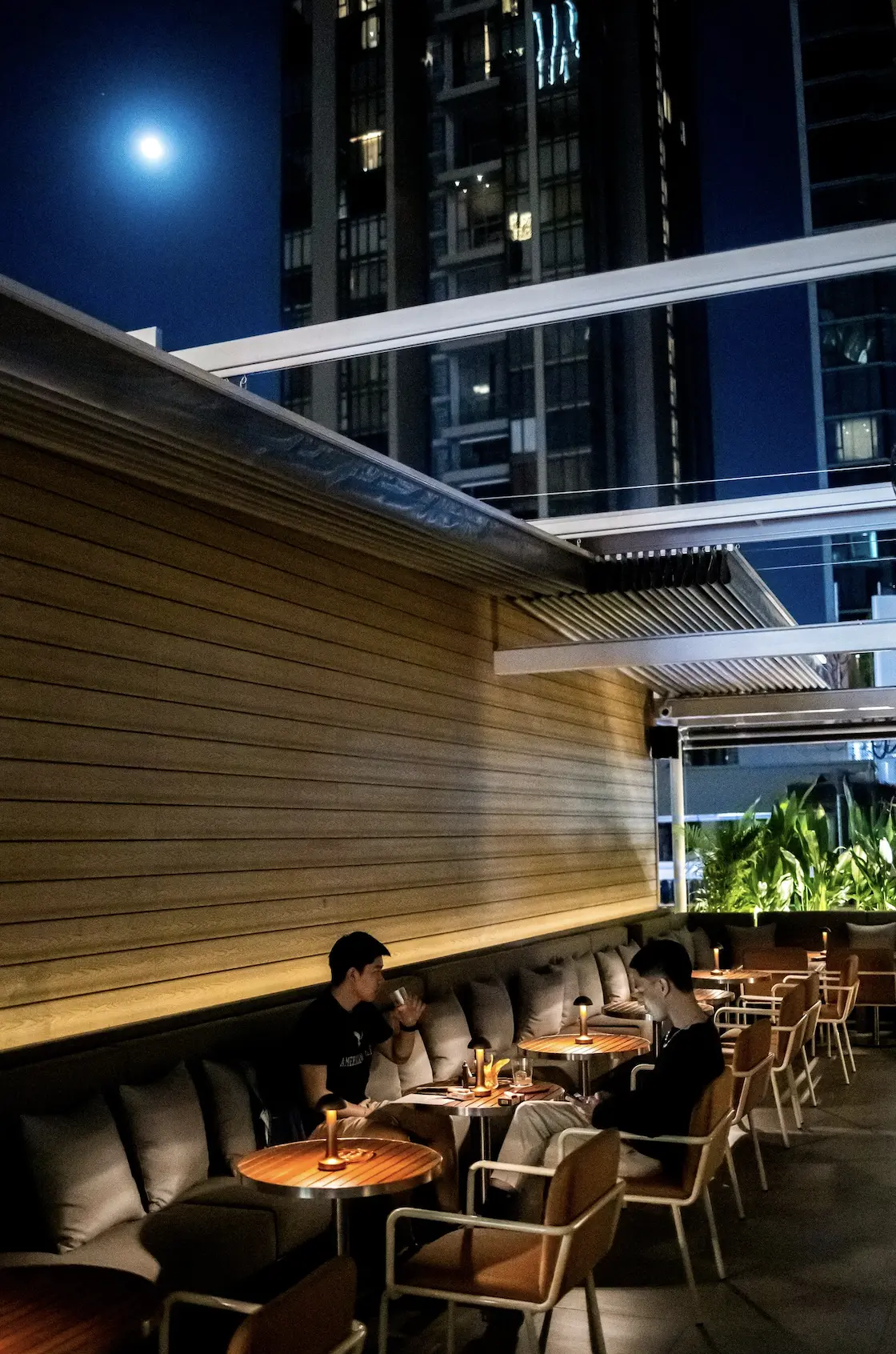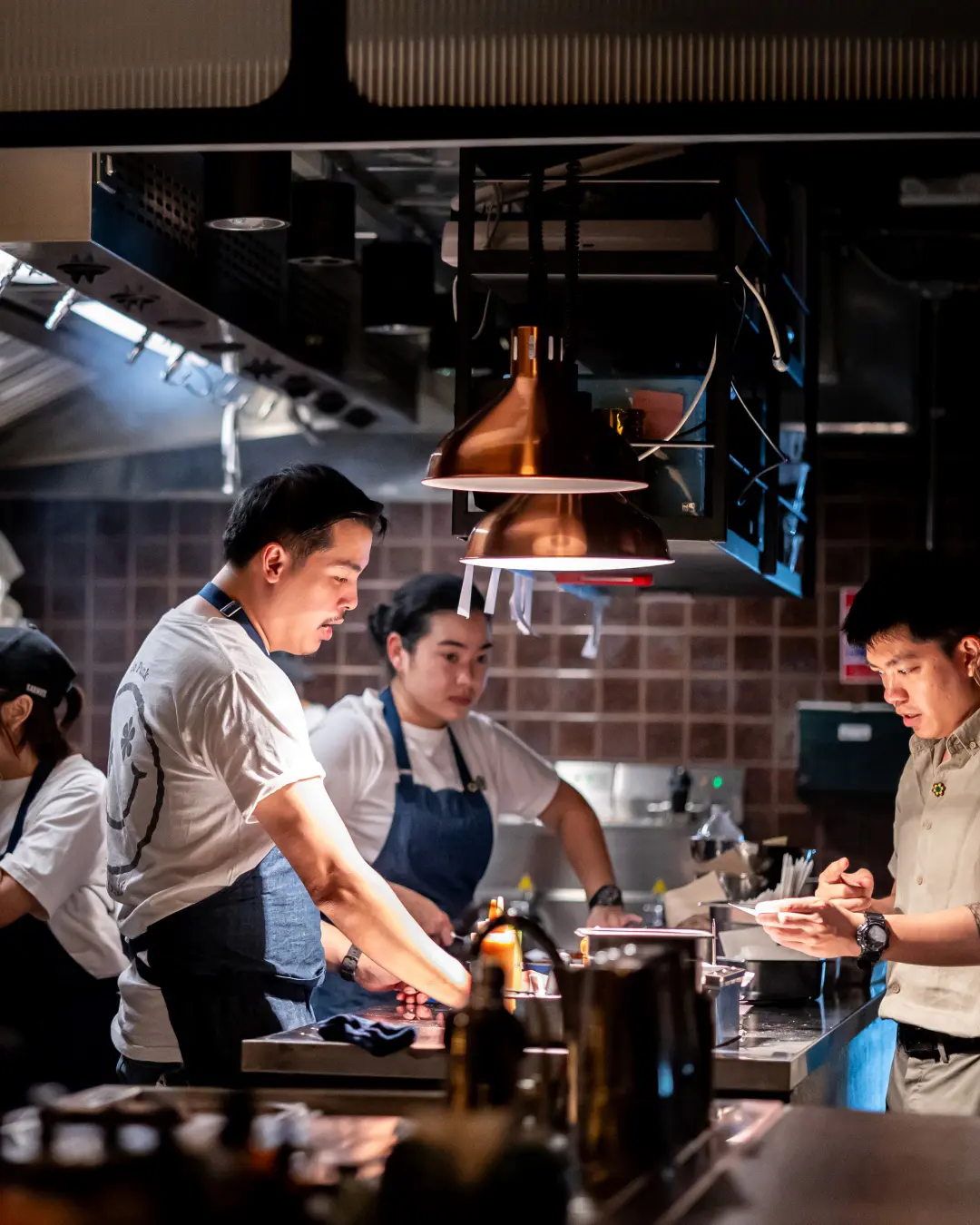 Located above Sarnies Café on Sukhumvit 37, Funkytown is a playful cocktail bar that channels the energy of the 1970s with funky décor, velvet curtains, retro lamps, and a soundtrack of soul, R&B, and disco. The menu is built around a “funk scale,” offering drinks that range from approachable classics to bold, experimental creations—imagine a durian piña colada, a som tam–inspired gin sour, or even an Old Fashioned with duck pâté. Local flavors and sustainable ingredients take center stage, giving each cocktail a distinctly Thai twist. The food menu is just as adventurous, featuring inventive bites like Hamachi crudo tarts, pig’s ears with durian sambal, bone marrow canelé, and wagyu specialties.
