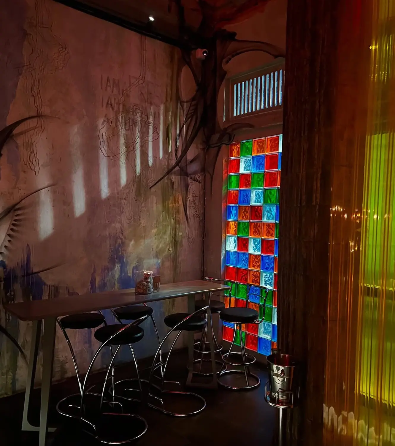 Located in a pair of transformed shophouses near Chinatown, G.O.D. Bar (Genius On Drugs) is a daring and imaginative cocktail spot that feels more like an art installation than a typical bar. Its interiors balance raw concrete with striking details, like stained glass, street-inspired artwork, and dramatic lighting, creeating a moody, yet stylish atmosphere.