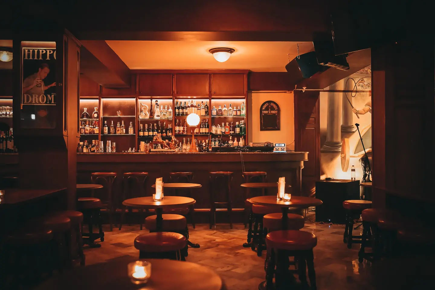 Hippodrome brings a touch of old-world charm to Bangkok’s modern nightlife. The bar’s interior features polished wood, marble accents, and striking Roman-inspired artwork, creating an inviting atmosphere. Guests can sip on a cocktail while enjoying a mix of pop and Thai music.