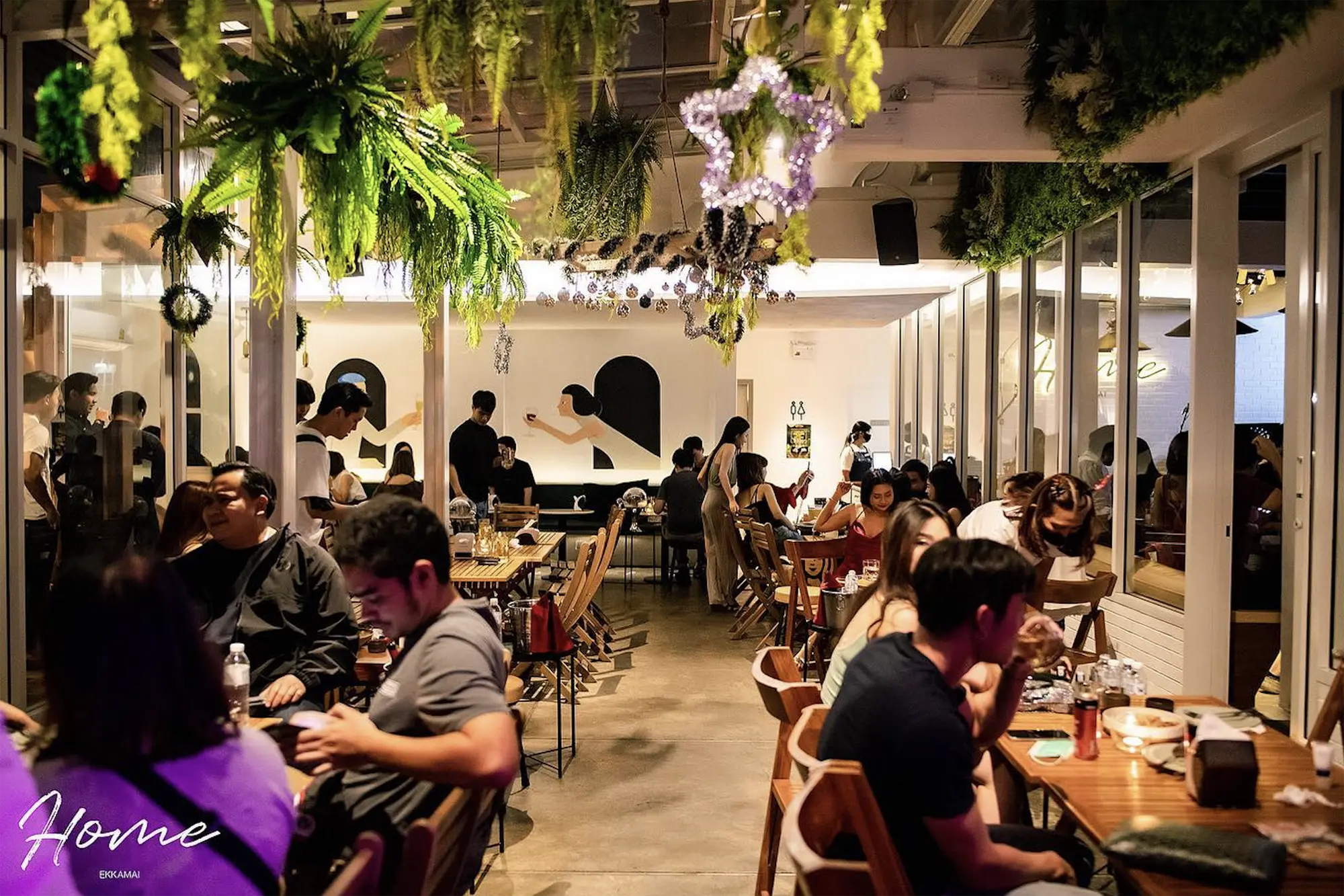 Home Ekkamai is a laid-back bar and restaurant that captures the cozy, welcoming vibe of a house party with friends. The venue doubles as a creative space, with walls showcasing pieces from local artists, giving it the feel of a casual art gallery. At night, the atmosphere comes alive with live bands and DJs playing everything from soulful R&B and pop to indie and alternative.