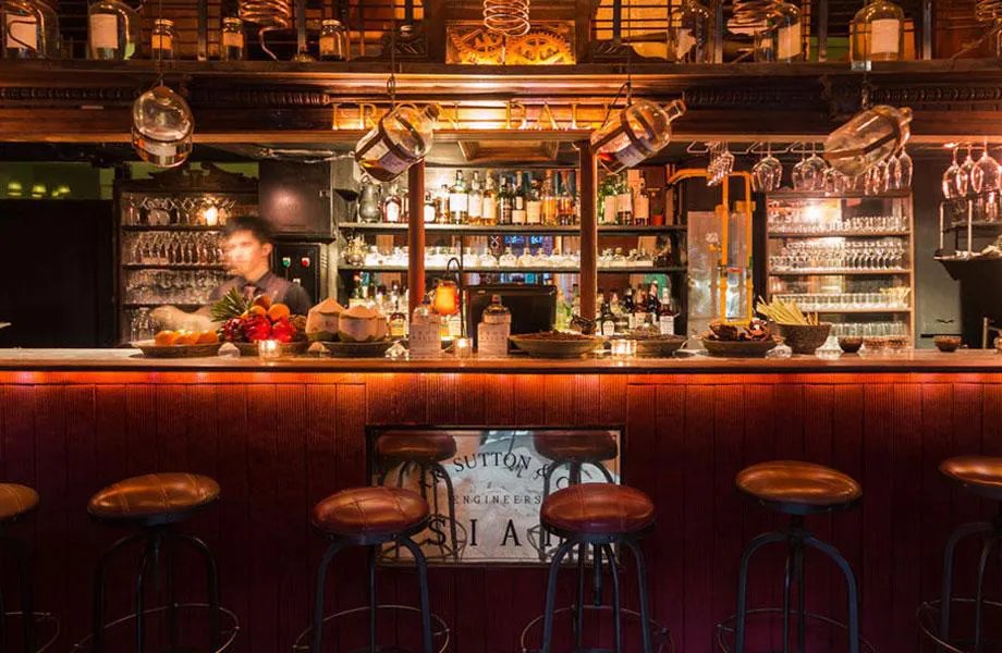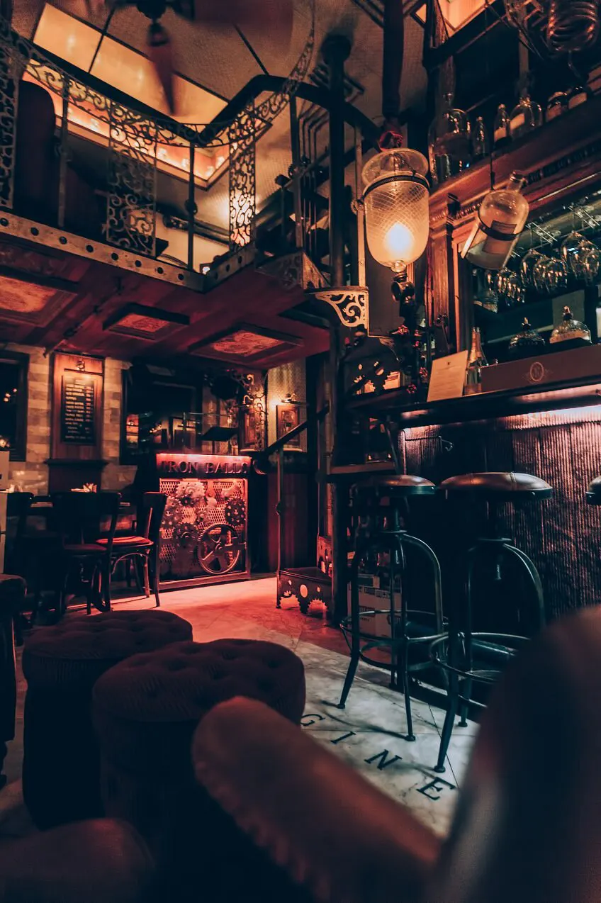 Iron Balls Distillery in Ekkamai is a striking blend of industrial‑chic and nautical whimsy, conceptualized by renowned designer Ashley Sutton. At the heart of this elevated bar sits a gleaming copper still where the house‑made Iron Balls gin is distilled on site, infusing both the cocktails and ambiance with artisanal charm The atmosphere feels like a contemporary 1920s English club—welcoming and stylish—with bartenders ready to whip up everything from a classic G&T to more inventive concoctions. Complementing the cocktails, the menu features gourmet bites such as wagyu burgers, truffle fries, and even Utah Beach oysters, making it a well‑rounded spot for a memorable night out.