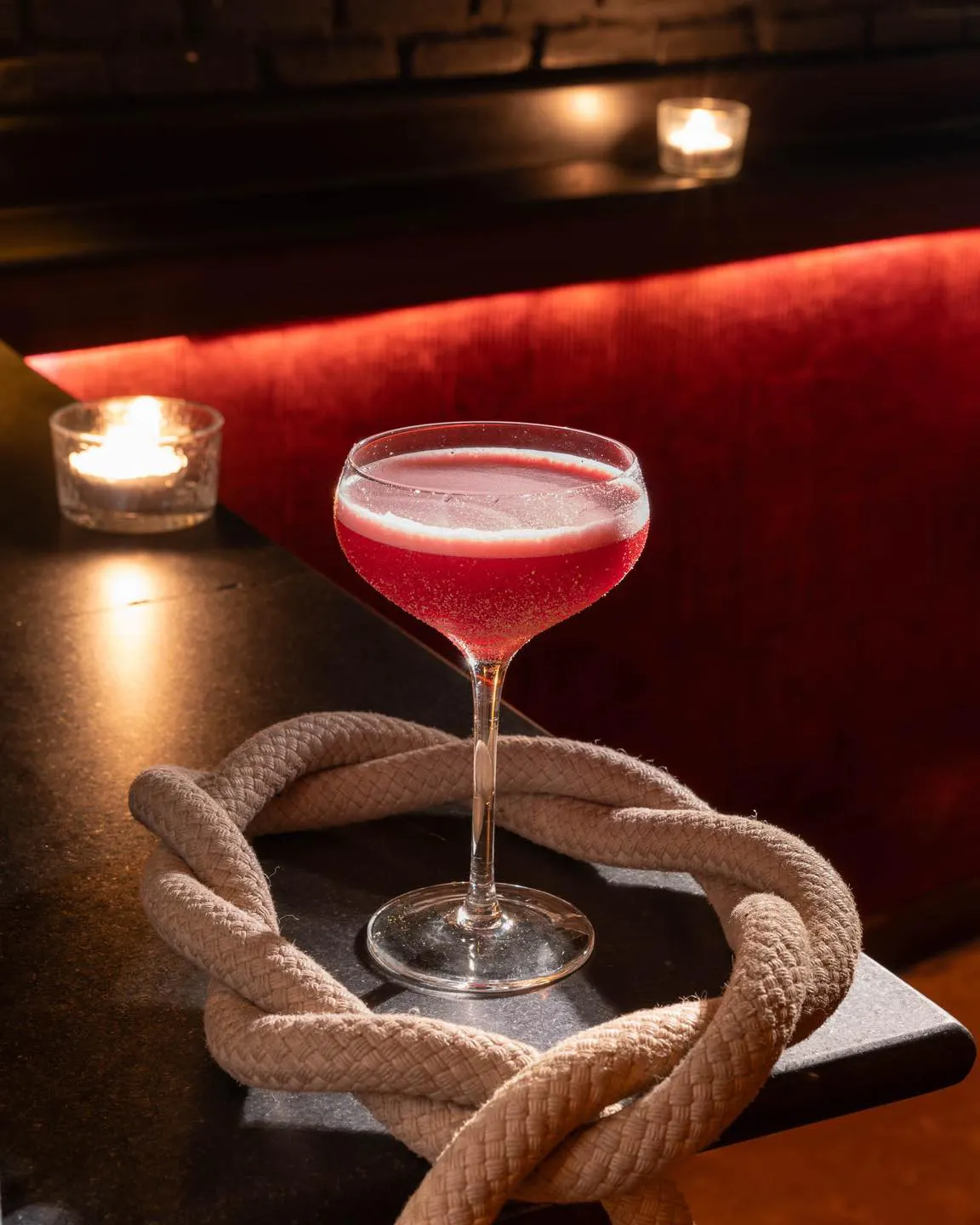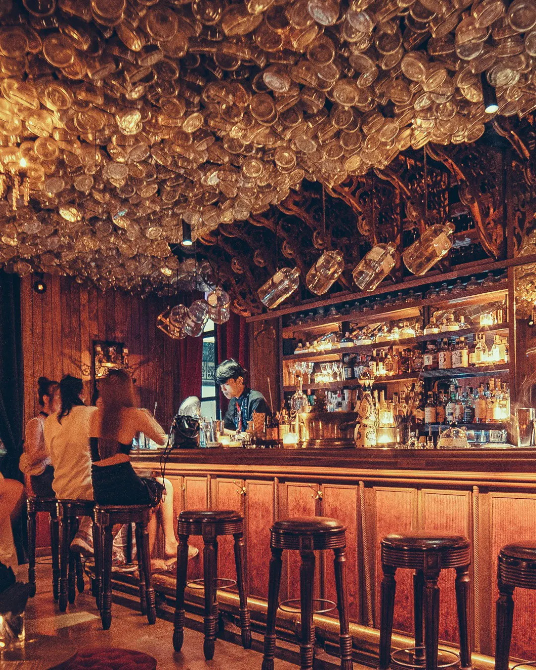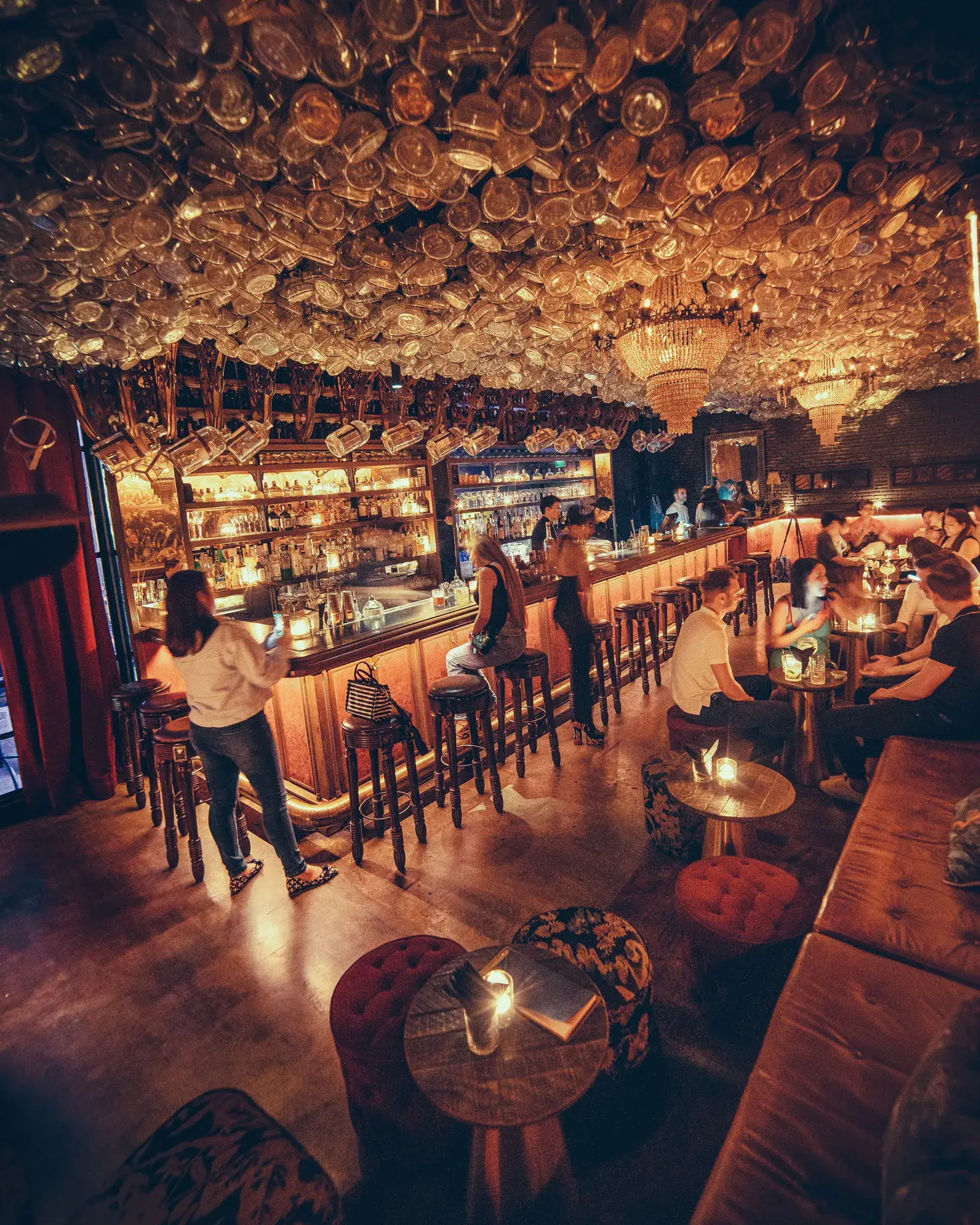 Red velvet cladded walls and a dimly lit interior are submersed beneath thousands of Iron Balls bottles. The perfect venue to sip and wonder before heading into Sing Sing Theatre (nightclub) next door.