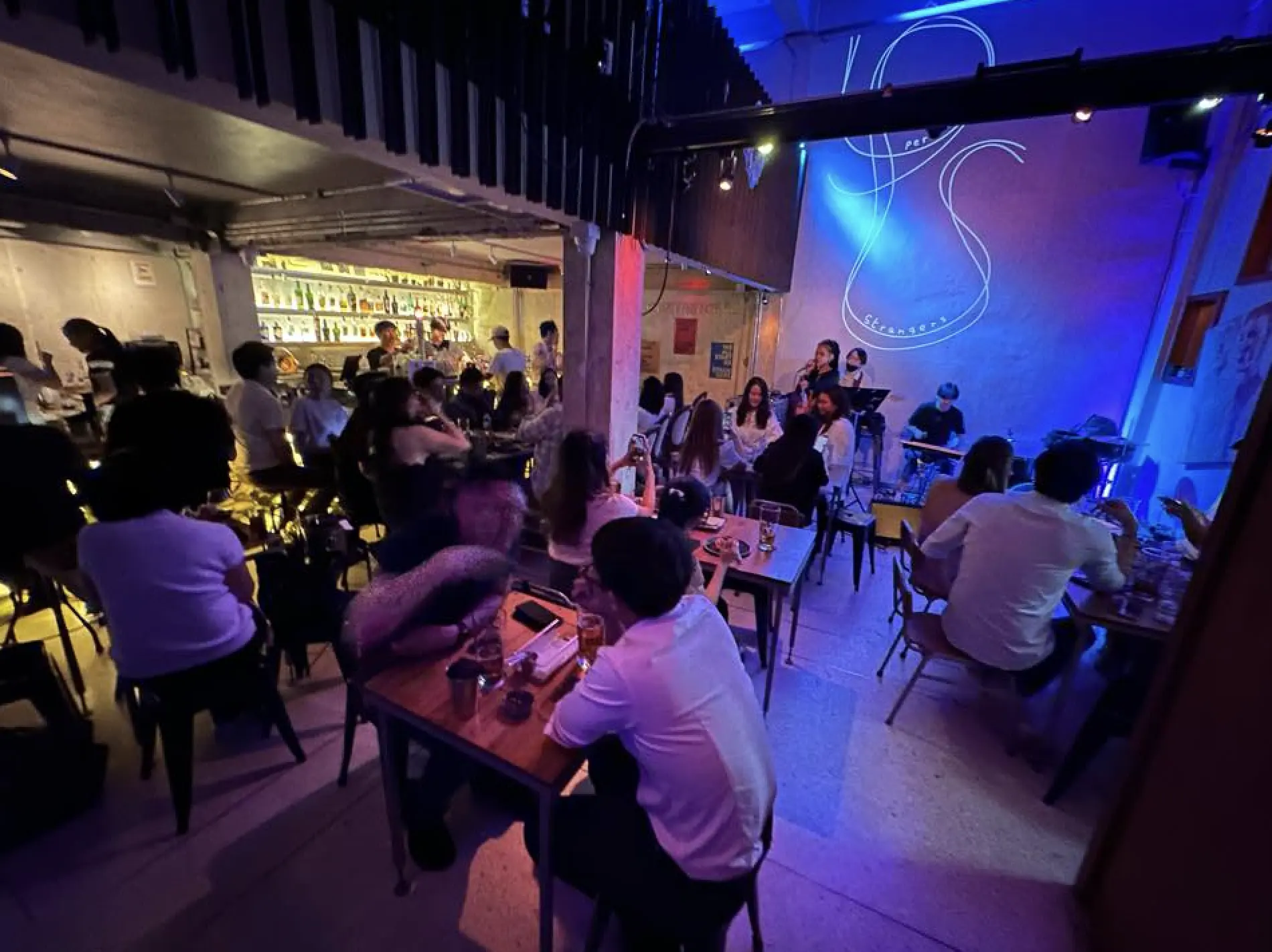 Perfect Strangers moves effortlessly from daylight café to after-hours cocktail hideout. The space blends a modern-industrial feel with playful neon and a rotating mini photo gallery. Drinks are inventive and seasonal; signature cocktails backed by beers and soft drinks. The kitchen turns out comforting fusion plates with Thai, Japanese, and Italian touches, equally good for dinner or late-night snacking. Add easygoing live music most nights and you’ve got a chill neighborhood spot where newcomers end up chatting like regulars.