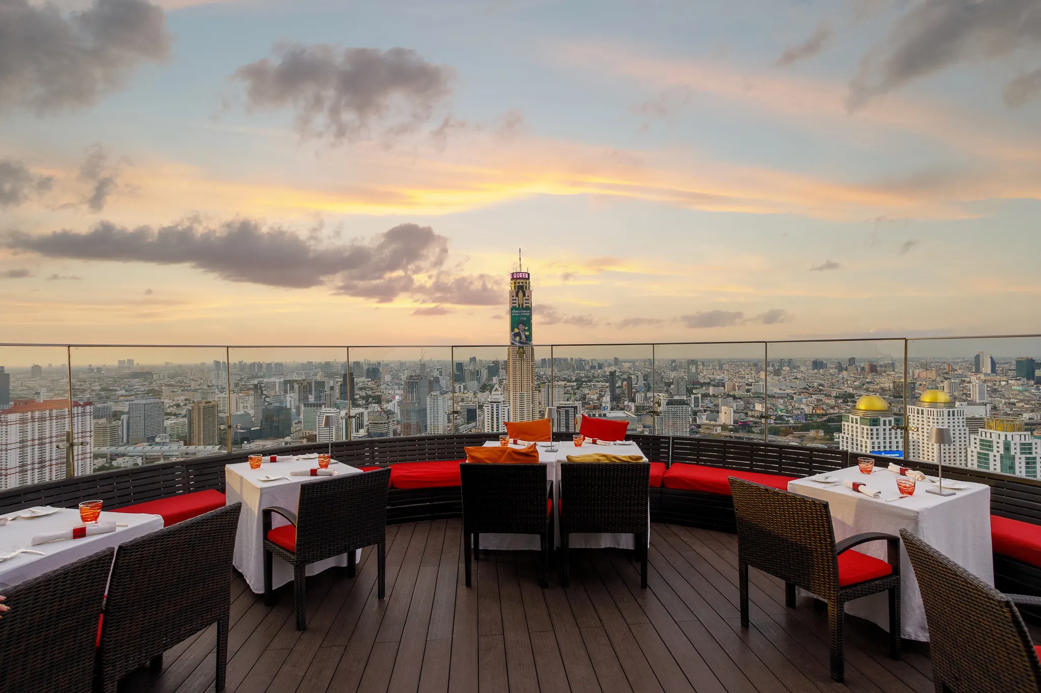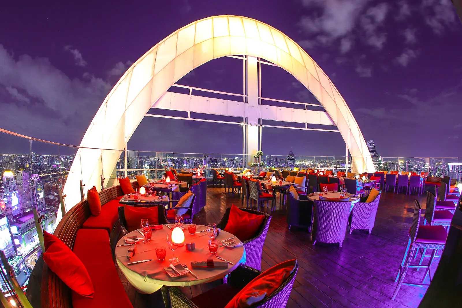 Perched atop the 55th and 56th floors of the Centara Grand at CentralWorld, Red Sky Bar is one of Bangkok’s premier rooftop destinations, offering sweeping 360-degree views of the city skyline. This chic, open-air venue is renowned for its striking illuminated arch and sophisticated ambiance, making it a favorite for both locals and travelers seeking a memorable evening. Guests can indulge in a curated selection of signature cocktails, fine wines, and gourmet light bites while soaking in the panoramic vistas. For those desiring a more substantial dining experience, the adjacent Red Sky Restaurant serves refined European cuisine crafted by Chef Luca Russo, featuring standout dishes like the Surf & Turf Tower and truffle-infused Wagyu beef. Conveniently located in Bangkok’s bustling shopping district, Red Sky Bar combines exceptional views, culinary excellence, and stylish design, making it an ideal spot for sunset drinks, romantic dinners, or special celebrations