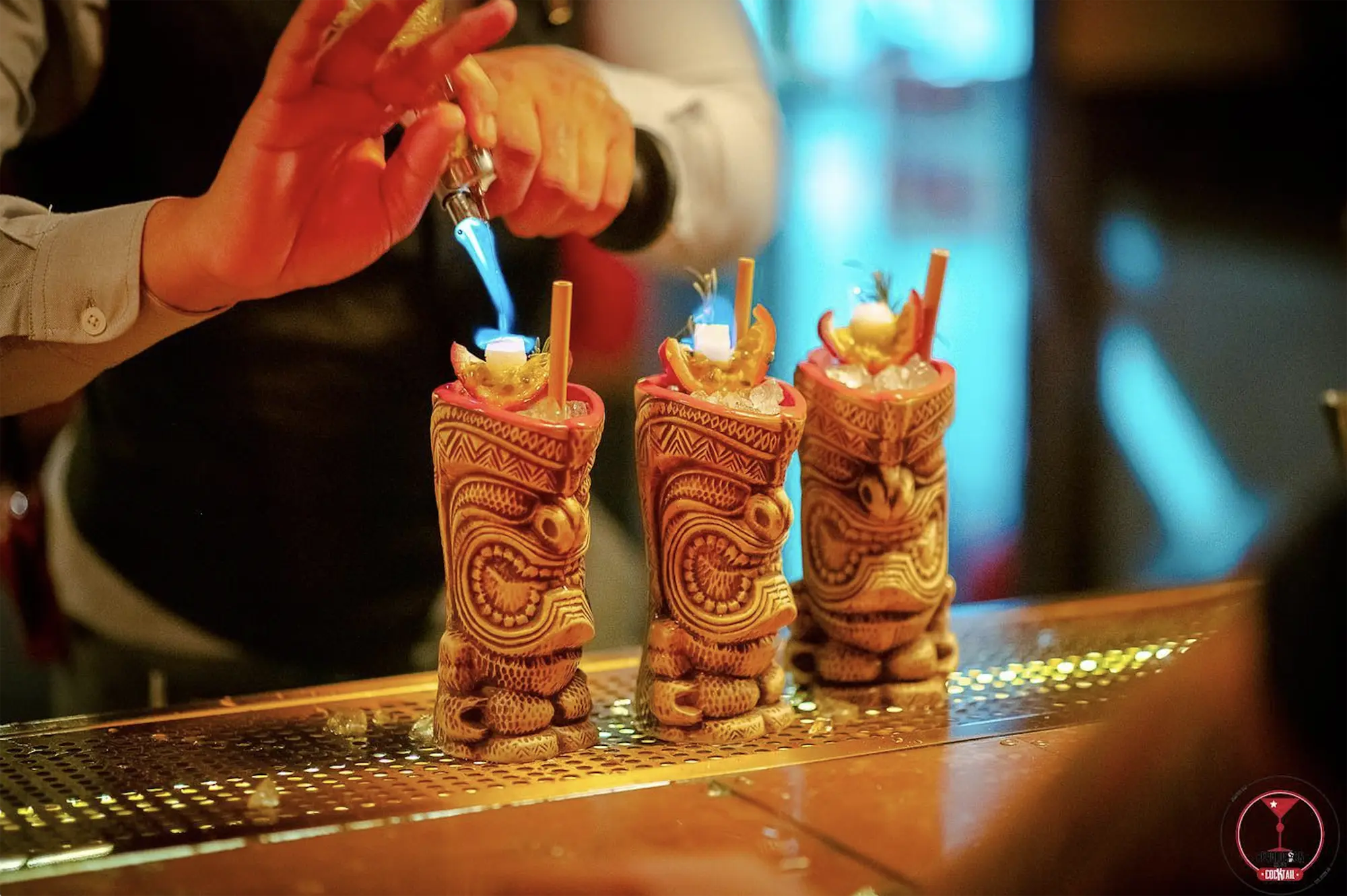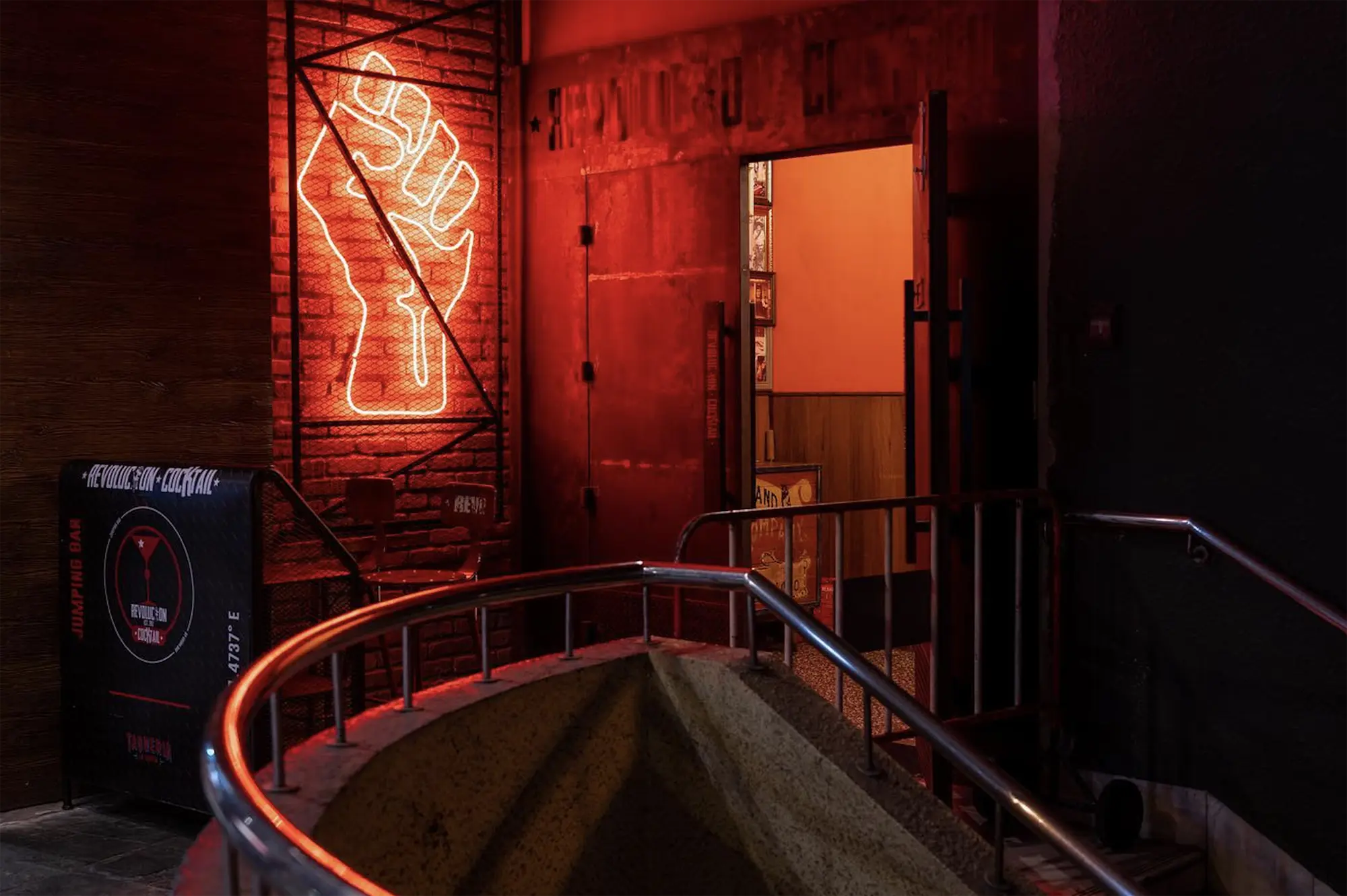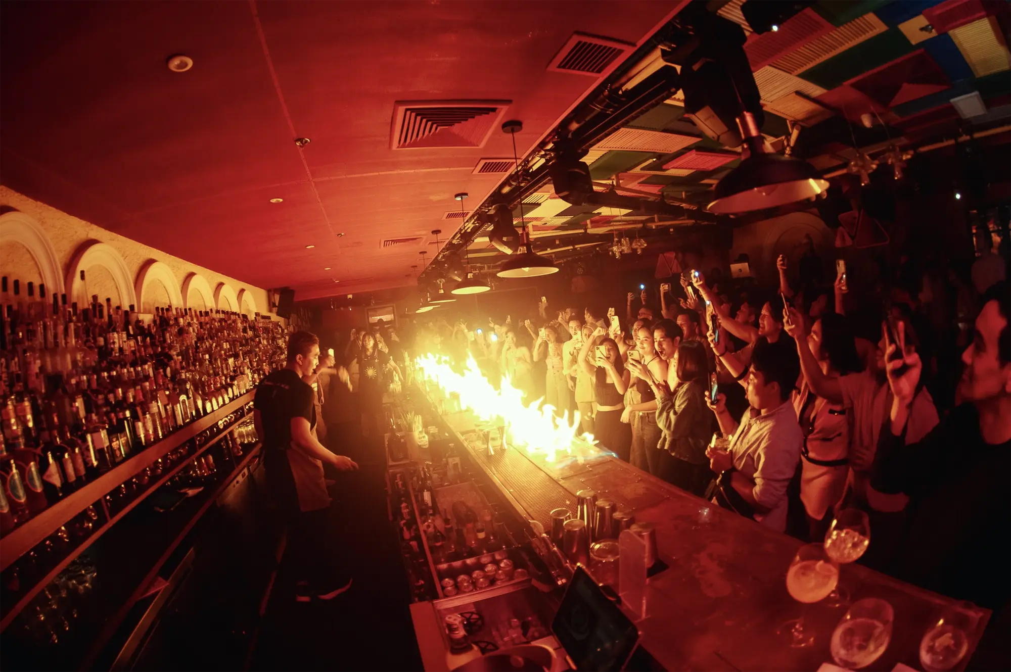 Revolucion Cocktail Bar brings a lively Latin spirit to Bangkok’s nightlife with its Cuban-inspired energy and theatrical mixology. Bartenders double as performers, shaking, flipping, and even setting bottles on fire as they craft inventive drinks that range from tropical twists to dessert-style creations.