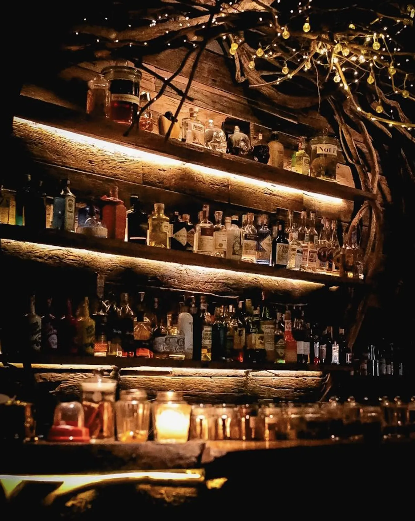 Root Bar’s design feels alive with twisting roots woven into the walls and bar itself. Instead of offering a fixed cocktail list, the bar takes a more personal approach—guests describe their mood or flavor preferences, and the bartenders create a custom drink on the spot. This made-to-order style, paired with the earthy, immersive setting, makes Root Bar more than just a place for cocktails; it’s an intimate and imaginative experience that blends atmosphere with artistry.