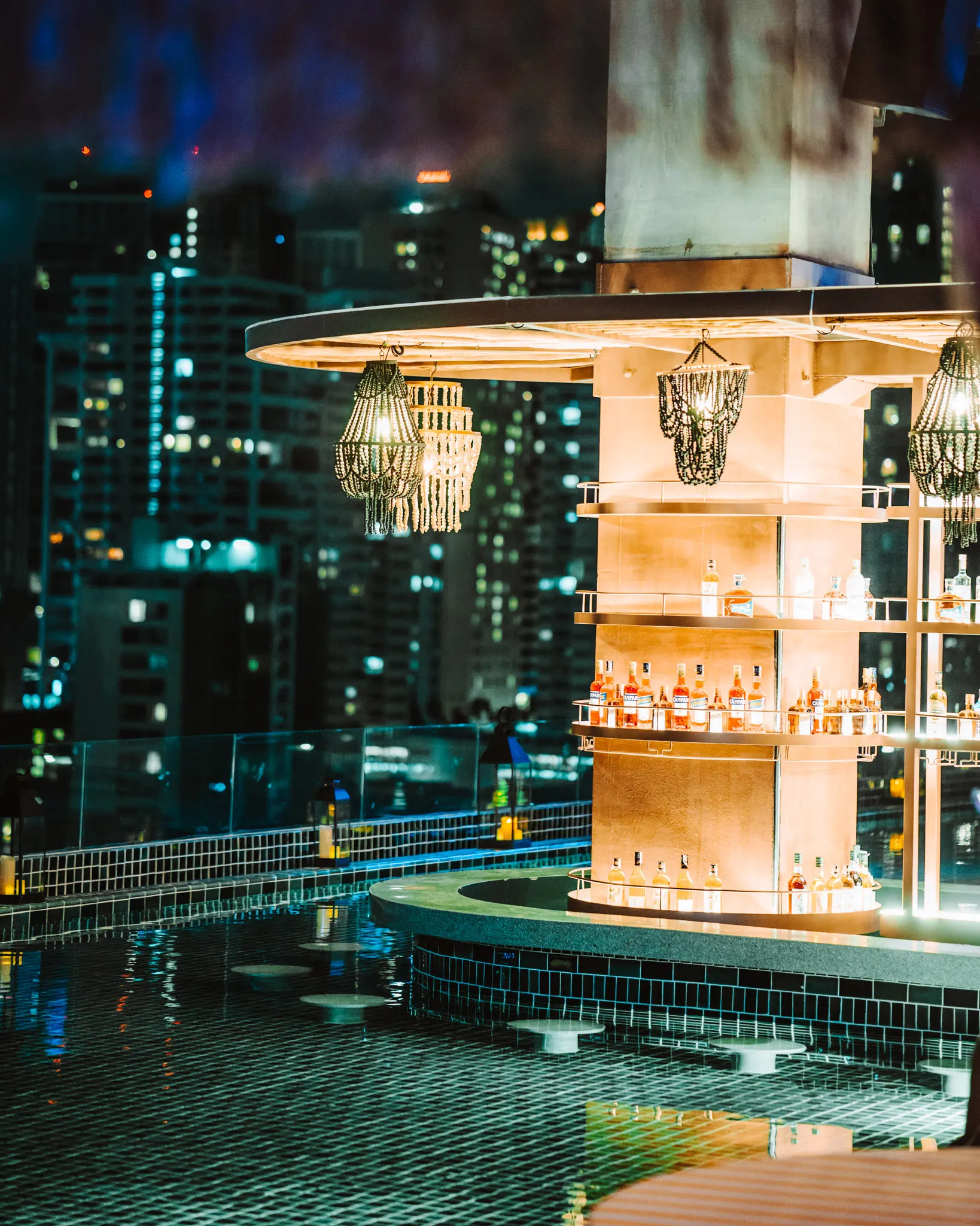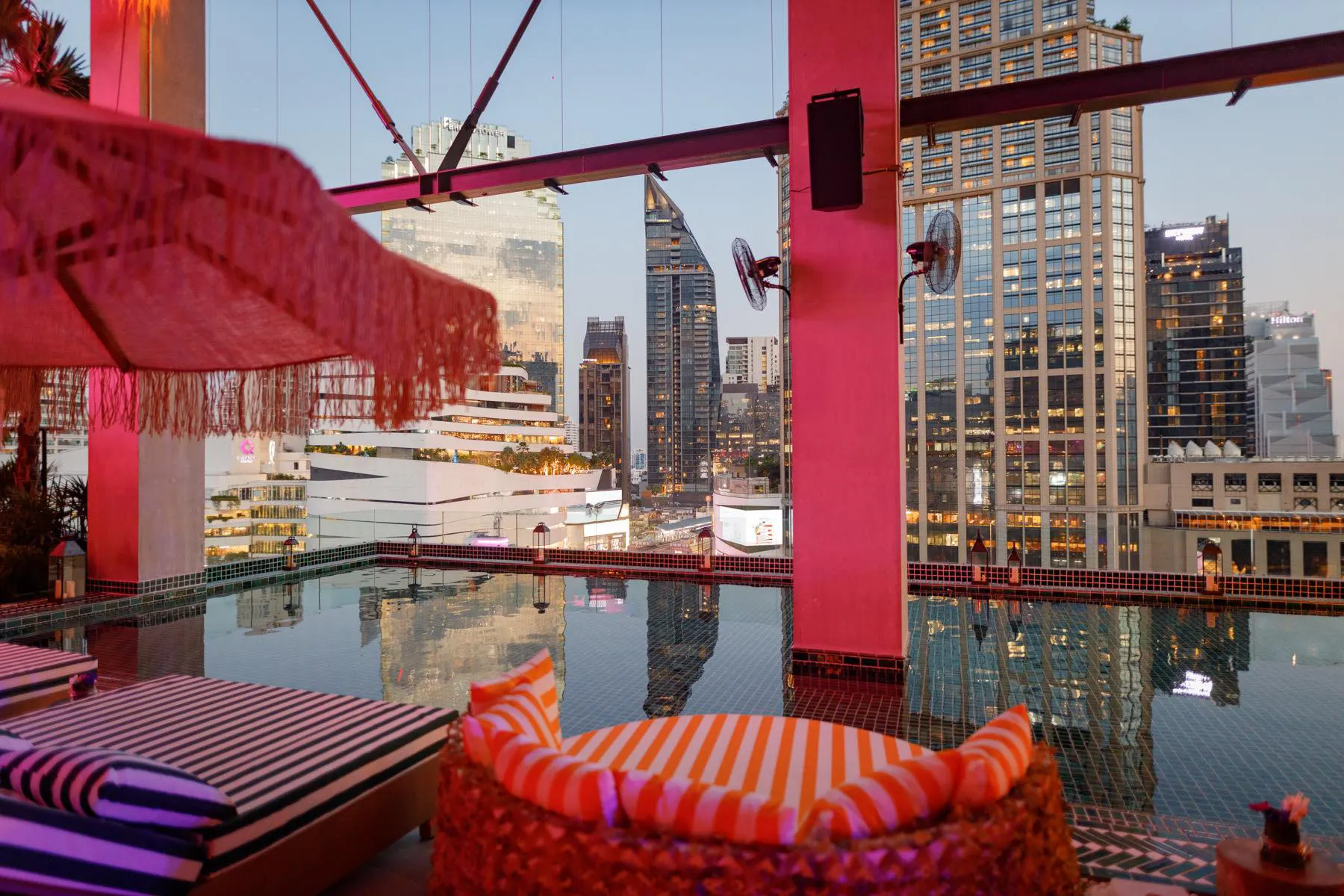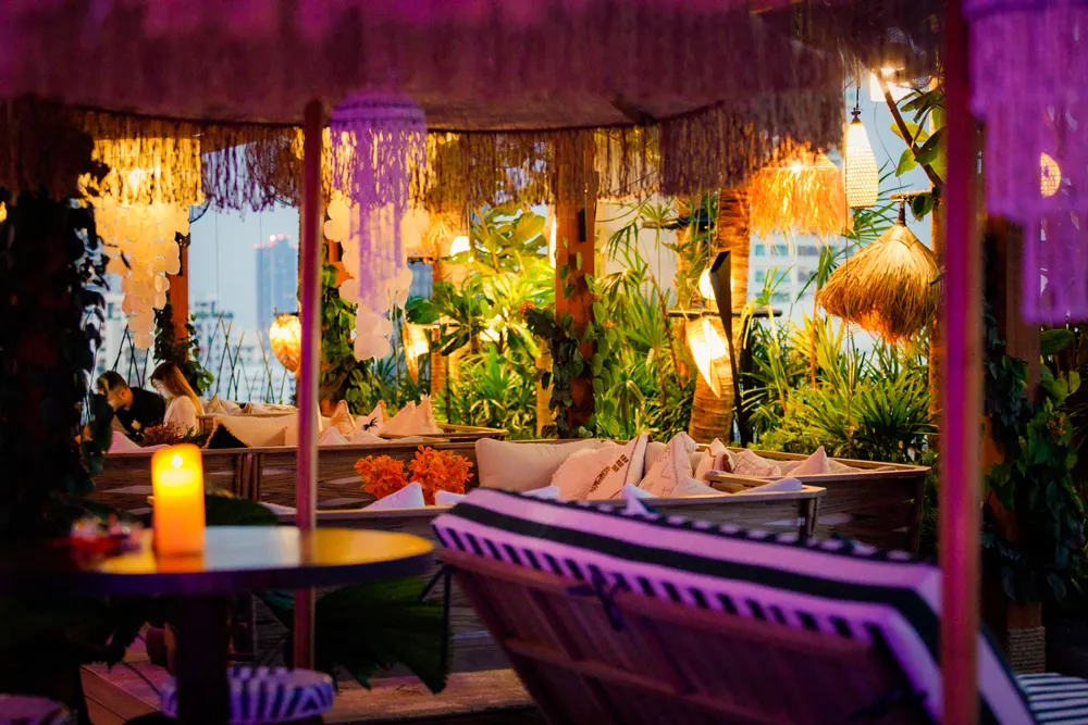 Tribe Sky Beach Club offers a unique fusion of tropical beach ambiance and urban sophistication. This rooftop oasis features an expansive infinity pool, elegant sun loungers, and a stylish bar area, all set against panoramic views of the city’s skyline and Benchasiri Park. By day, guests can unwind to chill house and electronic music, savoring a menu that ranges from light bites to gourmet dishes. As night falls, the atmosphere transforms with live DJ performances spinning house, afrobeat, and EDM.