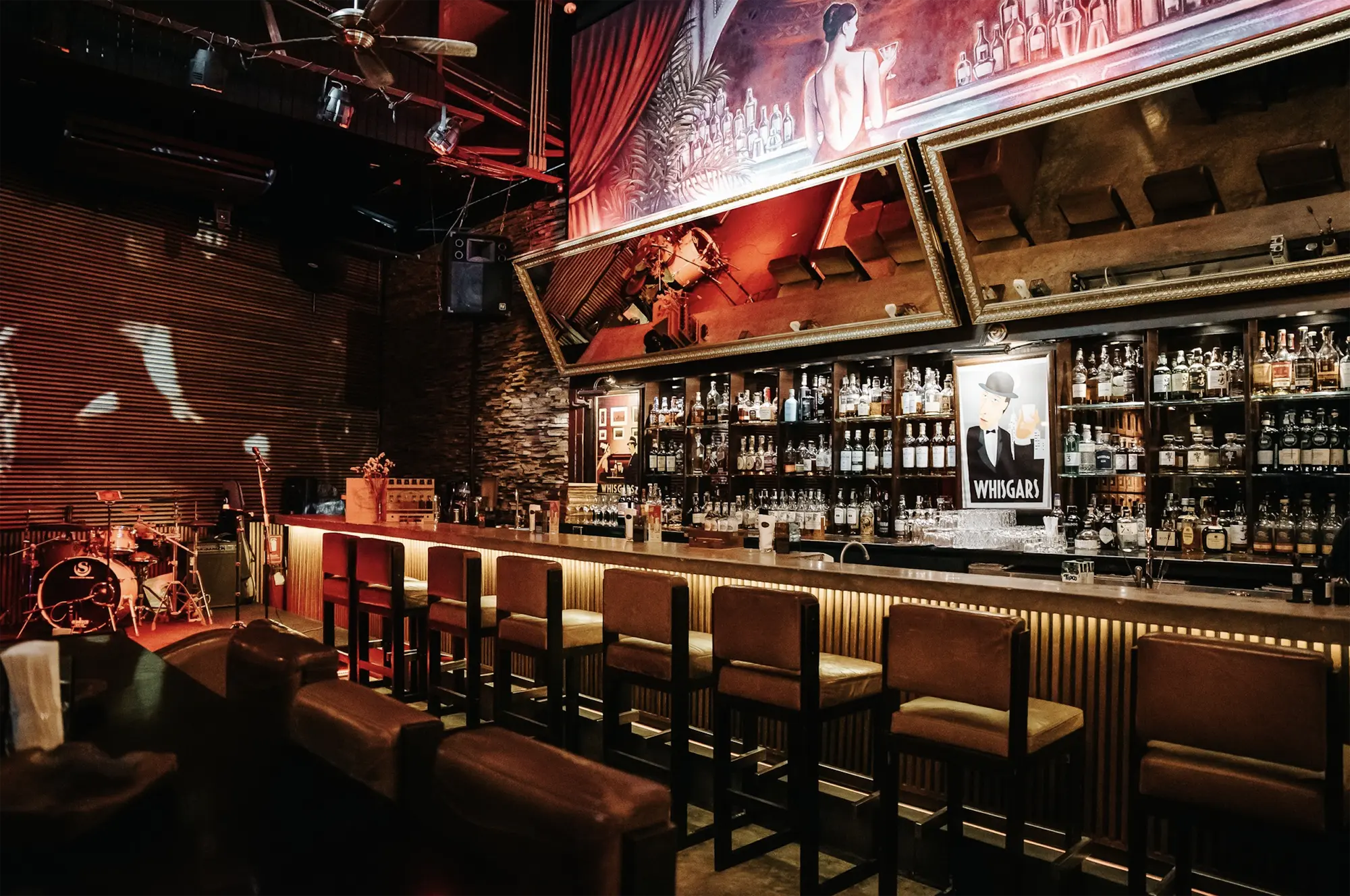 Whisgars blends a premium whiskey bar with the charm of a classic cigar lounge. Known for its extensive collection of single-malt Scotch, rare whiskeys, and craft cocktails, Whisgars also offers a carefully curated selection of hand-rolled cigars from around the world. The atmosphere is warm and inviting, with plush seating, dim lighting, and a timeless design that sets the stage for both intimate evenings and lively social gatherings.